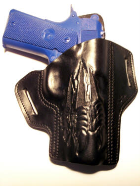 DESCRIPTION: Canted pancake design,1 1/2 belt loop, Cocked & Locked, Novak Sight Rail.